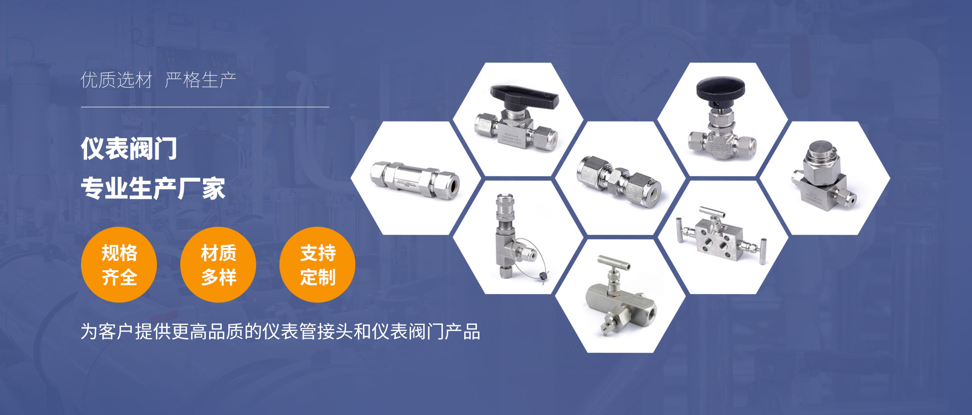 公司主要产品包括卡套接头、螺纹接头、球阀、针型阀、单向阀、过滤器、比例卸荷阀等通用仪表管阀件以及中高压仪表管阀件,减压阀、背压阀、工艺截止阀等,并面向所有行业定制加工。产品广泛应用于分析仪器、石化电力、氢能、新能源汽车、航空航天、半导体等相关行业,高品质的产品为客户创造了更大的价值,得到了客户的一致好评及赞誉。